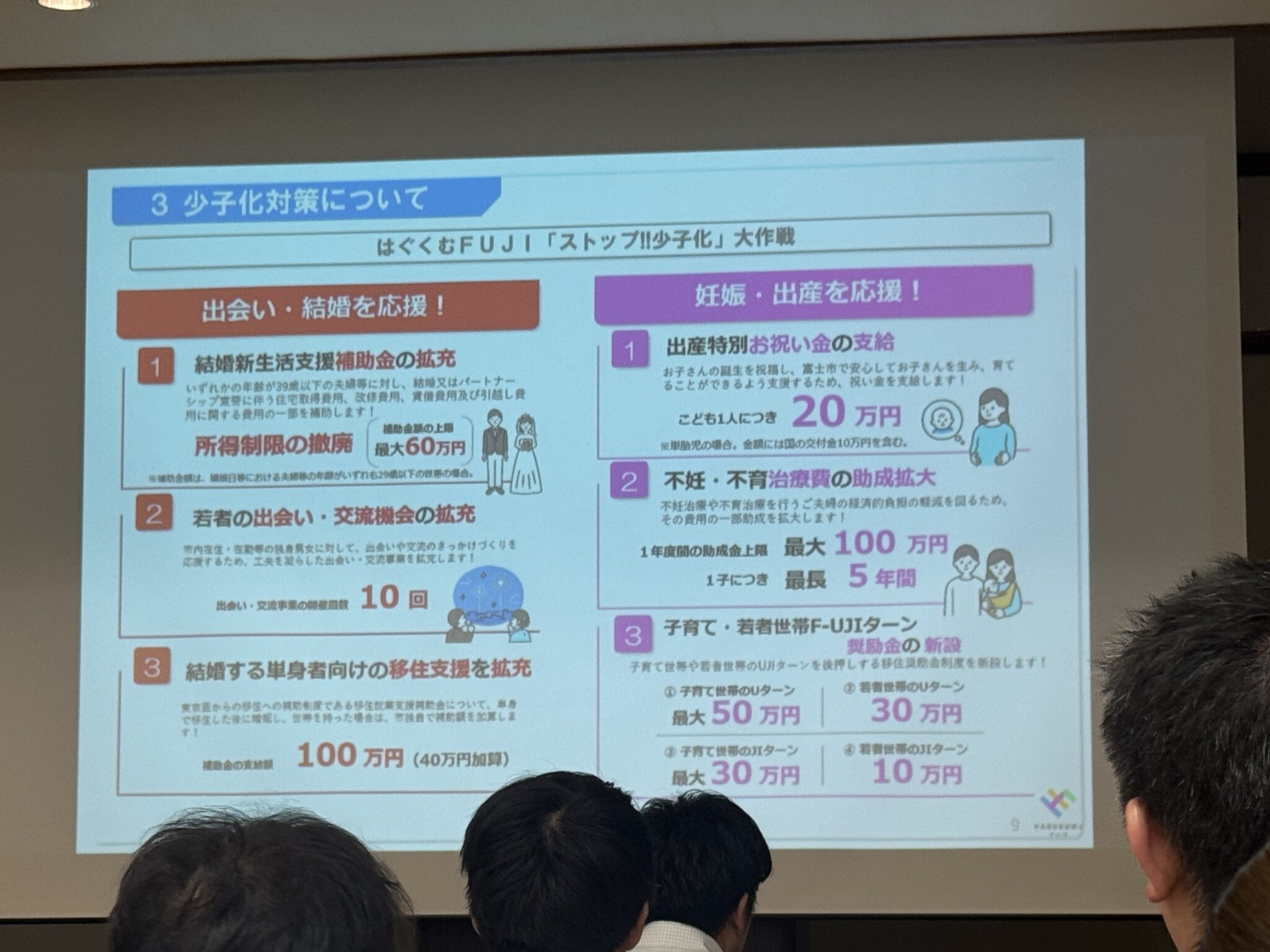 富士市役所のこども未来課など各部署の職員をお招きし、出生率低下など、富士市が抱える問題を切り口に、男女共同参画に対する取り組みについてお話をしていただきました。